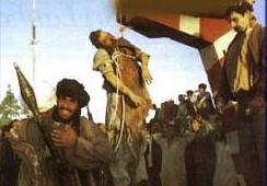 تصویر بشهادت رساندن نجیب الله و بردارش تنها میتواند دشمنان افغانستان را خوشنود سازد و نه انانرا که با وطن و صلح دلبستگی دارند. از شما خواهش است تا این تصویر را از صفحه بردارید. چون چنین بی حرمتی با رئیس جمهورش را هیچ افغانی نمیتواند حتی دیدنش را هم تحمل کند، ولو اگر از لحاظ سیاسی مخالف دولت دکتور نجیب بوده باشد.