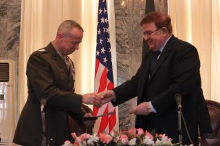 عبدالرحیم وردک وزیر دفاع ملی و جنرال جان آلن فرمانده کل نیروهای ناتو در افغانستان امروز طی محفلی در وزارت امور خارجه کشور، توافق نامه انتقال زندانیان و گرفتن مسوولیت زندان بگرام را امضا نمودند.