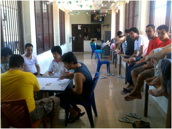 Inmates pass the time with board games .