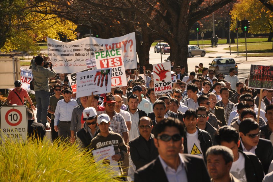 هزاره های مقیم استرالیا با مدیریت فدراسیون سراسری هزاره ها در این کشور(Australian Hazara Federation) از شهر های مختلف چون : سیدنی، ملبورن، بریزبین، ایدلاید، پرت و کانبیرا روزپنجشنه مورخ 10/05/2012 در پایتخت استرالیا (کانبرا) یک راه پیمایی گسترده را به راه انداختند. این راه پیمایی در بخاطر اعتراض و تقبیح نمودن سکوت پاکستان ، جامعه بین المللی، کشورها و ارگانهای حامی وطرفدار حقوق بشر، نسبت به کشتار بی رحمانه هزاره ها در کویته پاکستان توسط شبکه های تروریستی و گروه های تندرو افراطی، راه اندازی شده بود. در این راه پیمایی بیش از دوهزار نفر از سراسر آسترالیا شرکت ورزیده بودند.