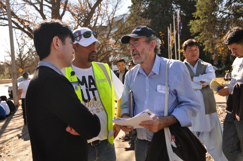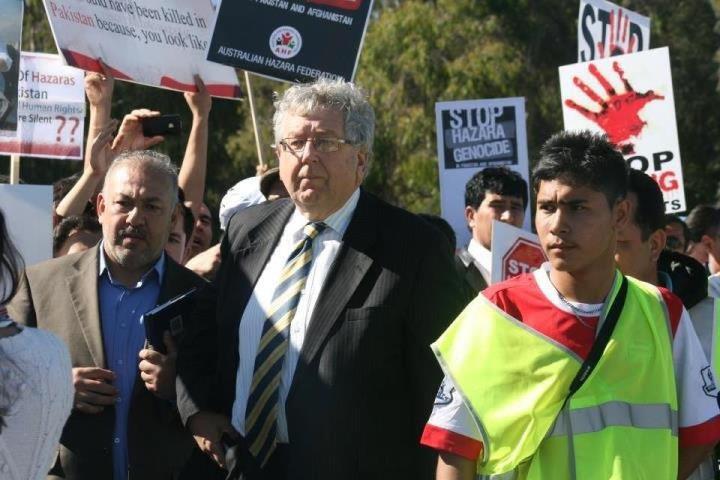 محترم آقایی "ایان رینتول" یکی از فعالان در امور مهاجرین نیز در جمع تظاهرات کننده گان سخنرانی نمود. وی نیز از حرکت مدنی هزاره ها تقدیر نمود و گفت که استرالیا باید صدای چهل هزار هزاره ای را که تابعیت کشور را دارند، نا شنیده نگیرد. باید دولت آسترالیا قتل هزاره ها در کویته پاکستان و سایر نقاط جهان را محکوم کند. وی ضمن تذکر نام یک شرکت کننده در تظاهرات که پسرو پدرش را در حال عبور در مسیر راه بدست جنایتکاران در پاکستان از دست داده است، گفت "پس باید دولت استرالیا قتل عام هزاره ها را به صورت جدی تقبیح نموده و برای توقف آن تلاش نماید.
