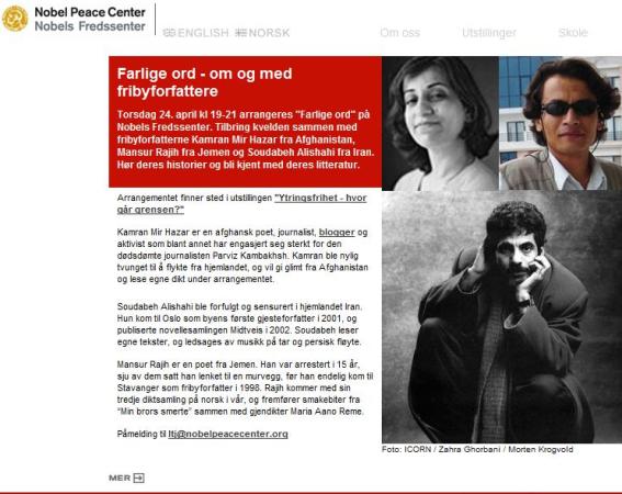 شعرخوانی و سخنرانی کامران ميرهزار در مرکز صلح نوبل