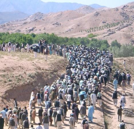 هزاران تن در شهر نیلی مرکز ولایت بامیان، با راه اندازی يک راهپیمایی، اعتراض خود را به کشتار و چپاول تاریخی باشندگان مناطق مرکزی توسط کوچی ها ابراز داشتند.