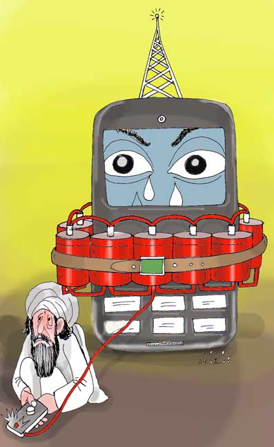 This kind of cartoons give the clear pictures of dirty taliban yesterday and today they are burning the schools so no wounder if they disconnect our contact with our families by blowing up the pillars of wireless net works