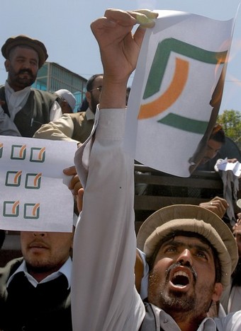 عکس از خبرگزاری فرانسه: تعداد محدودی عليه تلويزيون طلوع در دفاع از جبار ثابت به خيابان آمده بودند.