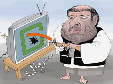 khod en qomandanan wa jinyatkaaran digar raahe wa sargarmi e nadarand ba joz az aan keh afkaar e haywaani e khod ra bar e digaran tahammul kunand. Haala ba enha chi? Agar ziyad shawq darand, Television channel e az khud baaz kunand wa ba mardum baand ke chi ra mebinand wa chi ra na? Qazaawat ra ba mardom baanin. Aksar e mardom en barnamaha ra dost darand wa tamasha mekonand. Shomaye keh dost nadarin nabinid, chishm e khod ra pod konid, Television e khod ra beroon bindaazid. Shoma ra ba digaran chi kaar???