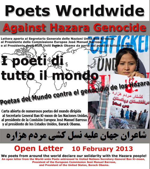 نامه سرگشاده صدها تن از شاعران برتر جهان علیه نسل کشی مردم هزاره در افغانستان و پاکستان بزودی منتشر می شود!