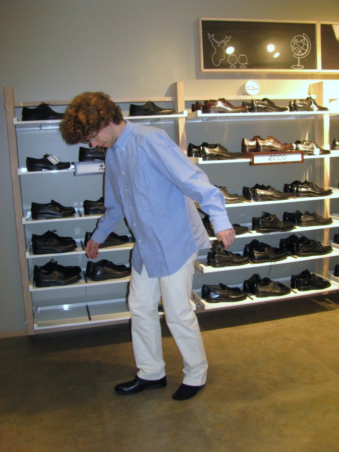 ته به بوټان اخلي، ميده، ميده څپېده، ځان يې يوې مغازې ته ورساوه، په دکان کي څو