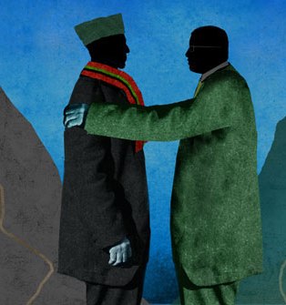 در مقابل، به نظر میرسد که جانشین آقای مشرف، آصف علی زرداری، در وجود کرزی بهترین دوستِ خود را پیدا کرده باشد. این هفته در بریتانیا، این دو همتا با میزبان خود، دیوید کَمرون، نخست وزیر بریتانیازیرِ یک سکو، با هم خندیدند، دست هم را محکم فشردند و باهم قول دادند. آقای کَمرون آن را یک "سطح بی سابقه ی همکاری" این دو همتا نام برد. آنها حتی با هم موافقت نمودند تا در راستای یک توافق صلح با طالبان در شش ماهِ آینده همکاری کنند. این نشان دهنده ی یک تغیری در راهبرد پاکستان عمیقتر از آن است که توضیح آن را در شخصیت لینت آور آقای زرداری دریافت نمود.