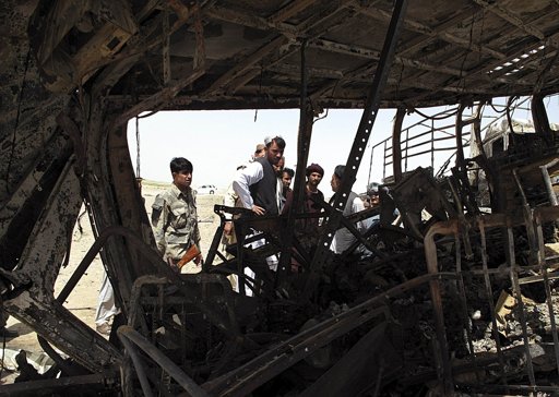 در نتیجه ی تصادف یک بس حامل مسافر با یک تانکر حامل سوخت، در منطقه ی خاک چوپان ولایت قندهار، ده ها تن جانشان را از دست دادند. شدت این تصادف و انفجار ناشی از آن به اندازه ای بوده که شناسایی اجساد کشته شدگان ناممکن شده است.