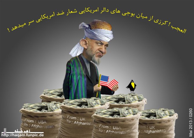 العجـــب ! جـــلالتمـــاب کـــرزی از مـــیان بوجـــی هـــای دالـــر امـــریکـــایی شـــعار آزادیخـــواهـــی ضـــد امـــریکـــایی ســـر مـــیدهـــد
