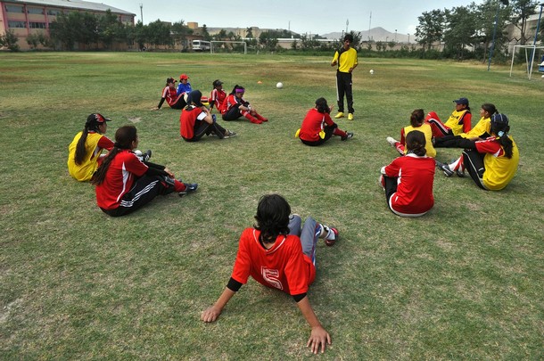 کابل: تمرین تیم فوتبال دختران افغانستان