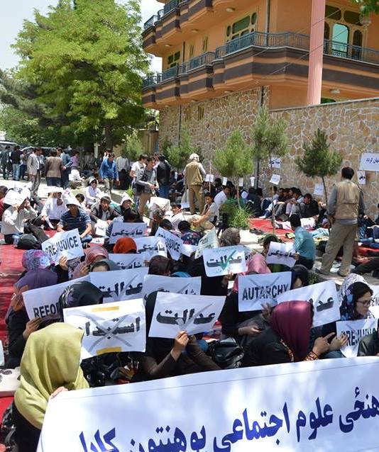 دانشجويان دانشكده علوم‌اجتماعي دانشگاه كابل دو روز است كه دست به اعتصاب غذاي نامحدود زده‌اند. آنان در مقابل دروازه پار لمان تجمع كرده‌اند و دوزاده صنف درسي دانشكده به صورت كامل تعطيل شده است. تعداد آنان به هشت صد نفر مي‌رسد. صد نفر از آنان در اعتصاب غذاي به سر مي‌برند و ساير آنان در كنار آنان به تحصن پرداخته‌اند.