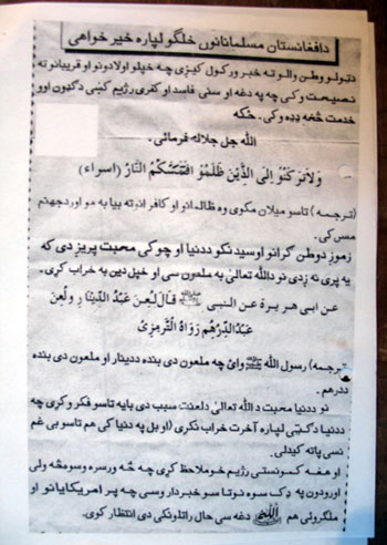 من هیچ گونه ابراز نظر در مورد این اسناد نکردم منظورم فقط و فقط ترجمه اش بوده و خط به خط ترجمه کردم تا آن عده از عزیزانیکه با زبان پشتو آشنایی ندارند به معنای این شب نامه ها پی ببرند و با مفکوره ها و مرام های طالبانی آشنایی پیدا کنند. ابراز نظر را به شما و بقیه خواننده های عزیز واگذار می کنیم.