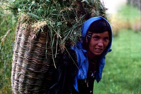 يک زن در حال انتقال علوفه در ولسوالی مالستان ولايت غزنی