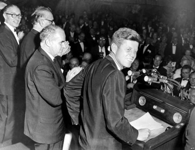 د ډیموکرات ګوند کاندید جان اف. کنېډي دامریکا د جمهوری ریاست د انتخاباتي کمپاین پرمهال – د می ۱۴ مه ۱۹۶۰ نیویارک.