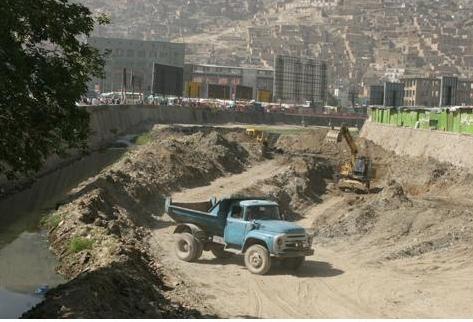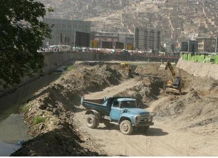 شهرداری کابل، دریای کابل را در ساحه سينما پامير شهرکابل پاک می کند.