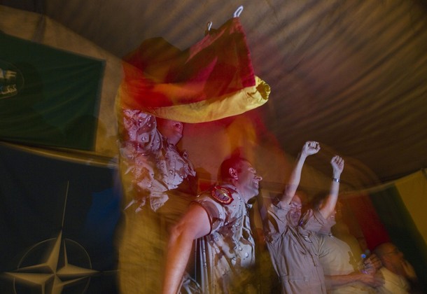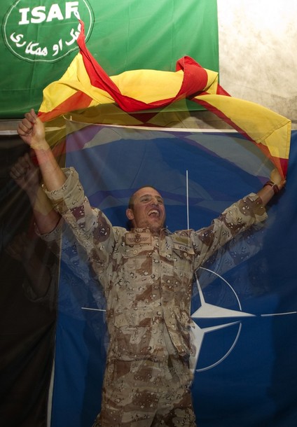 سربازان اسپانیایی و هلندی در افغانستان هنگام دیدار نهایی جام جهانی فوتبال