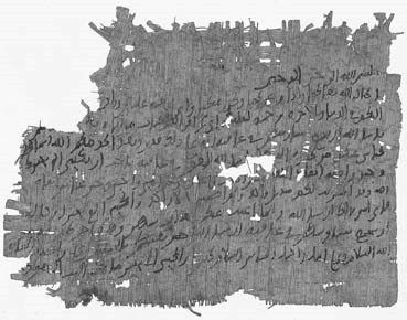 «بسم الله الرحمن الرحیم. از ابوالخریل حصیر فروش.۶ دینار، یک ششم کم تر، دریافت کردم. این مبلغ را ابوالرفیع و ابراهیم ابن محمد العلایی در جمادی الاخر سال ۲۸۵ به من رساندند. این رسید را محمد بن عبدالجبار با دست خود نوشت».