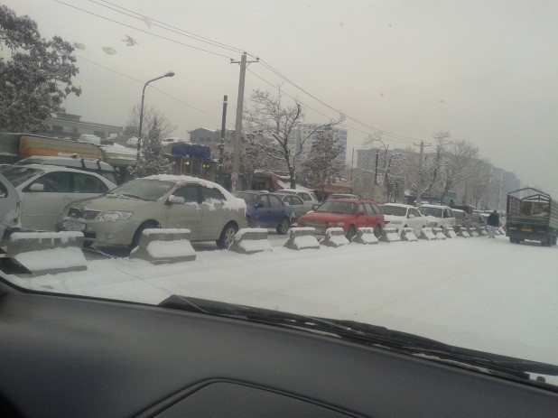 ما هم در روی سرک در بین موتر بندمانده بودیم و تقریباٍ از خیر خانه الی پوهنتون کابل دونیم ساعت و دونیم دقیقه را در بر گرفت. زمانیکه به دانشگاه رسیدم محصلان هم تعدا شان بسیار کم بود، مگر مه غیر حاضر شده بودم.