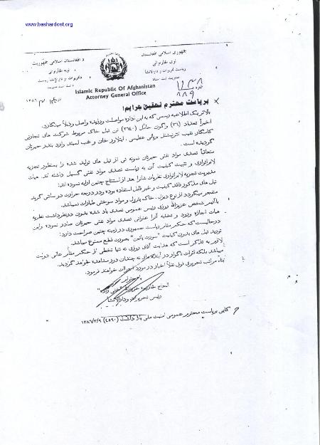داکتر رمضان بشردوست همراه با اسناد، گزارش تحقيقی يک هفته نامه چاپ کابل را نيز ضميمه کرده که در آن تصاويری از قربانيان مافيای نفتی در افغانستان است. (سايت رسمی رمضان بشردوست)