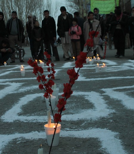 در ادامه، همه اشتراک کنندگان با هم به طرف چوک صلح رفتند و بالای مقبره های نمادین شمع افروختن و شاخه گلی را بنا به رسم احترام تقدیم ارواح شهدا اخیر کویته نمودند و مراسم با خواندن فاتحه ی به پایان رسید.