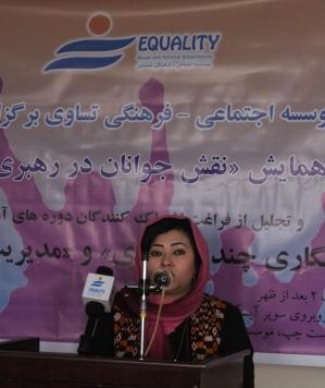 معصومه محمدی مسئول موسسه اجتماعی - فرهنگی تساوی که یکی از سخنرانان این برنامه بود از جوانان به حیث یکی از مولفه های تاثیر گذار برای بهبود وضعیت جامعه و ایجاد تغییرات مثبت یاد اوری کرده افزود : سهم دهی به جوانان درسطوح رهبری و مدیریت کمرنگ بوده است ودولت ونهادهای غیر دولتی باید بخشی از امور مهم مدیریت و رهبری را به جوانان واگذار نمایند و به جوانان اعتماد نمایند . وی با اشاره به اهمیت ایجاد جنبشهای مدنی و سیاسی جوانان , تلاش برای آموزش , سهمدهی و حمایت از جوانان را یکی از ماموریتهای کاری موسسه تساوی بیان کرده و افزود که موسسه تساوی بعد از آموزش جوانان در دوره های آموزشی مدیریت و رهبری و دوره های خبرنگاری چند رسانه ای , در حد توان خود زمینه های موجود برای ادامه فعالیتهای فارغین این دوره ها و کاریابی انان را جستجو وفراهم مینماید .