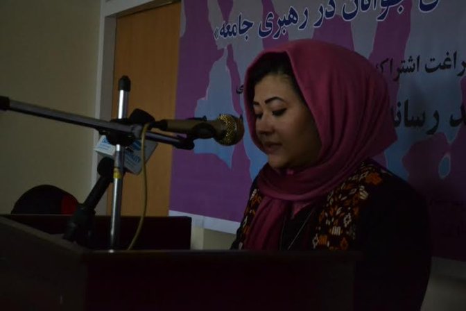 طبق آمار احصائیه مرکزی بیش از 65% مردم افغانستان را جوانان تشکیل میدهنداما با توجه به این رقم, فرصت های کافی به جوانان داده نشده است . جوانان در بخش ورزش ورسانه ها بسیار موفق بوده اند اما نیاز است تا سهم بیشتر به جوانان در عرصه های دیگر بخصوص در رهبری و مدیریت بخشهای مختلف نیز داده شود . وی افزود تجربه بزرگان مفید وقابل احترام است ولی نقش دادن به جوانان به معنی حذف نمودن صاحبان تجربه نیست،. جوانان جامعه به عنوان وجدان بیدار جامعه میتوانند در نزد بزرگان نه به عنوان پیرو، مطیع و فرمانبردار بلکه به عنوان مشاور, همراه و همکار نقش مهمی را ایفا نمایند .وی اظهار امیدواری کرد که همانگونه که کاندیدا های ریاست جمهوری د رارائه برنامه های شان به حضور جوانان توجه نموده اند بصورت عملی نیز به جوانان سهم داده و انها را حمایت کنند .