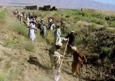 A group of returnees cleaning a canal in Badghis province under a UNHCR cash for work project.