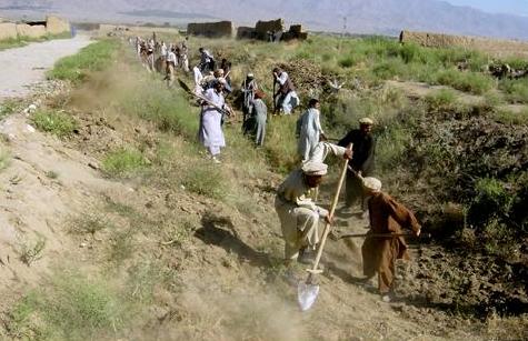 يک دسته از مردان عودت کرده در ولايت بادغيس تحت پروژه پول نقد در بدل کار اداره