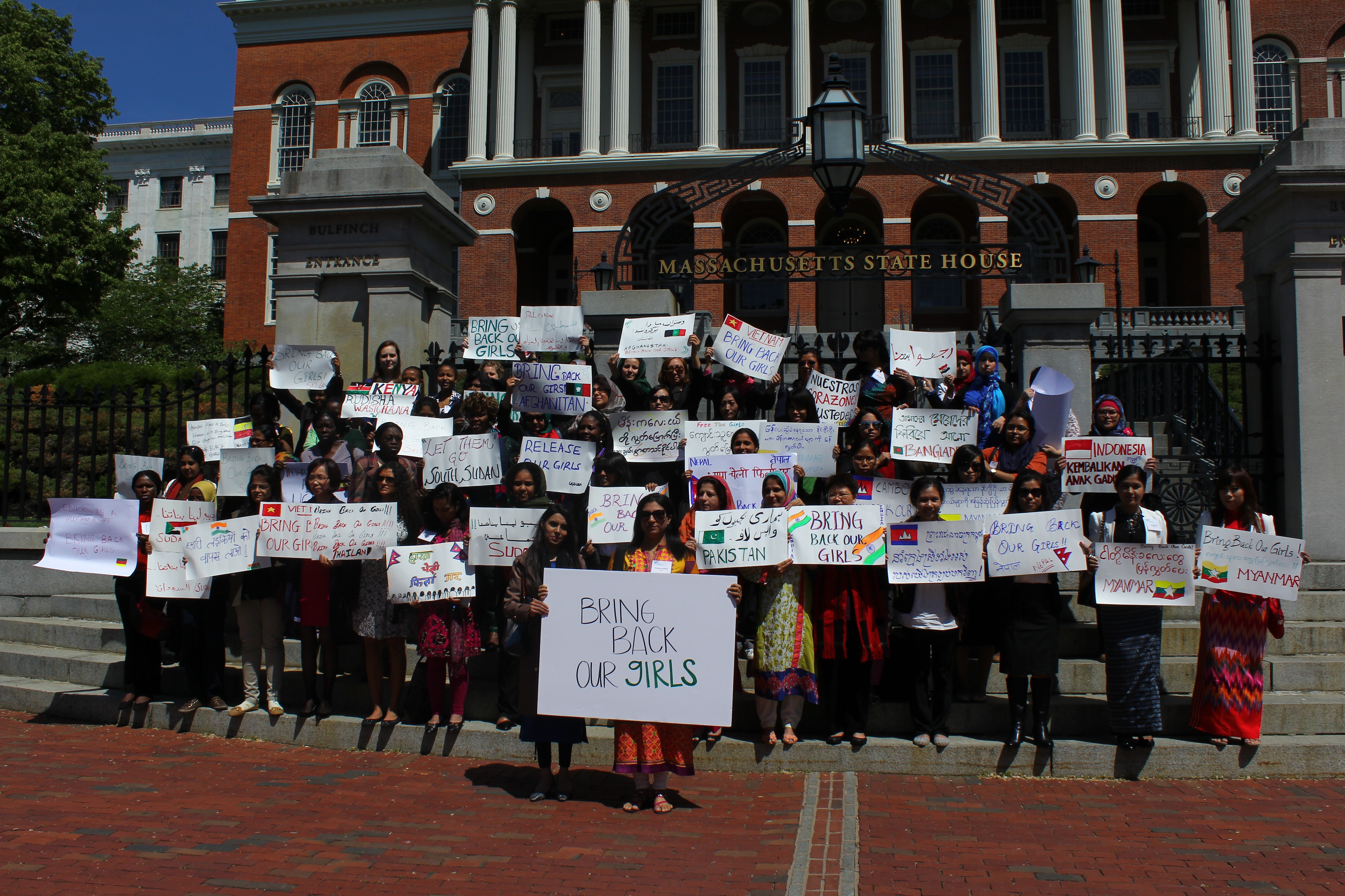 Thursday 29 May 2014, around sixty women from twenty-one countries gathered in front of Massachusetts State House and asked solidarity for Nigerian girls. The Nigerian schoolgirls were kidnapped by a group of gunmen almost a couple of months ago.