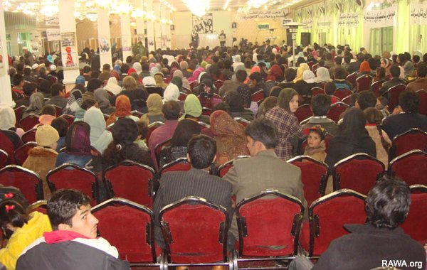 «راوا» يكي از قديمي ترين سازمان زنان افغانستان كه قاطعيتش در مبارزه بر ضد جنگسالاري، تروريزم، بنيادگرايي و دفاع از حقوق زنان شهرت جهاني يافته، هشتم مارچ روزجهاني زن را عليرغم تهديد ها و آسيب پذيري هاي امنيتي شان، اين بار در شهر كابل تجليل نمودند.اين محفل با بيشتر از 1300 شركت كننده در هوتل مرواريد برگزار شد. گردانندگان محفل اكثراً دختران جوان، مصمم و خلاف ساير محافل در كابل، ساده پوش بودند كه نظم خيره كننده اي به محفل بخشيده بودند. در شعارهاي شان ملاحظه كاري، نرمش و انعطاف بچشم نمي خورد. شركت كننده ها با دقت فراوان به صحبت هاي قاطع و صريح سخنرانان گوش فرا ميدادند. ناهيد دختر جوان مسلط بر زبان هاي پشتو و دري تحليل مفصلي از اوضاع كنوني ارايه داد. وي جنگسالاري، تروريزم و بنيادگرايي را عوامل اصلي بي ثباتي و بدبختي هاي مردم خواند و مصلحت گرايي هاي آقاي كرزي را بشدت محكوم نمود.