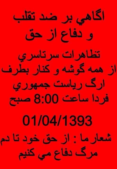 تازه ترين اطلاعيهء ستاد مركزي جنبش ضد تقلب :