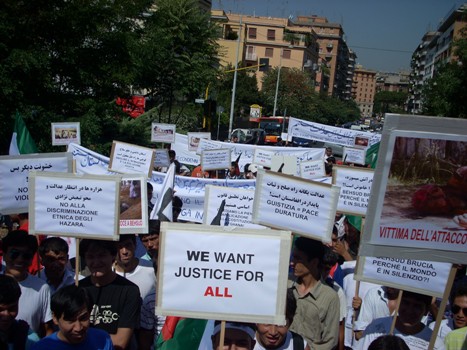 کمیته ضدکوچیگری وکوچ دهی اجباری درافغانستان، میدان سانتاکوستانزا، شهرروم ایتالیا.07.08.2008