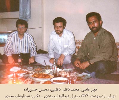 بهار 1373 بود. از محمدحسین جعفریان شنیدم که قهار عاصی در تهران است. نمیدانم که در تهران بودم، یا راهی تهران بودم. این قدر هست که اول بار او را در حوزهی هنری تهران دیدم و چه برخورد گرمی داشت. گویا آدم را سالهاست که میشناسد. بعداً در همان روز یا روزی دیگر، باری برای گردش به پارک ملت تهران رفتیم. آن قدر با من صمیمی شده بود که از جزئیات زندگی و کارهای همدیگر قصه میکردیم. و وقتی که دانست بیشتر وقت من به ویراستاری میگذرد، گفت «از اینجا که به مشهد رفتی دیگر هیچ وقت ویرایش نمیکنی و فقط شعر مینویسی» و من طبعاً گفتم «خوب. من هم همین آرزو را دارم.» ولی هیچ وقت چنین نشد.