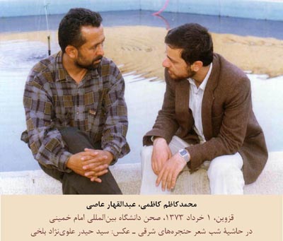 سید میرحسین مهدوی شاعر و نویسندهی کشور ما که امروز ساکن کاناداست، در آن زمان در دانشگاه بینالمللی قزوین دانشجو بود. دکتر سلطانحمید سلطان هم در آنجا استاد بود و به پیشنهاد آنان، شب شعری در آن دانشگاه برگزار شد با نام «حنجرههای شرقی». جمعی از شاعران از مشهد دعوت شدند، از جمله قهار عاصی که حضور او برای برگزارکنندگان شب شعر، مغتنم بود. آن سفر هم لحظات تلخ و شیرین داشت. در ابتدا همه چیز خوب بود. با قطاری بسیار خوب، راهی شدیم. یادم هست که در قطار، عاصی به من گفت «حالا که میبینم که با این عزت و احترام به شب شعرها میروی، میدانم که چرا حاضر نیستی به کشور برگردی.»
