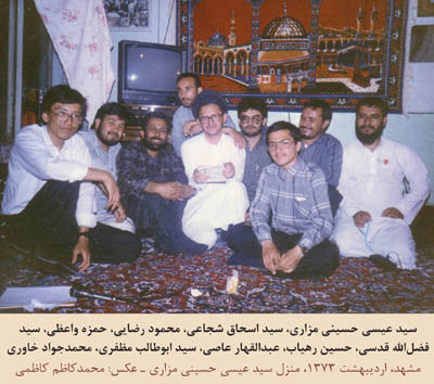 در مشهد این رفاقت ما بیشتر شد. در آن وقت هنوز «درّ دری» تشکیل نشده بود و پاتوق ما، دفتر ادبیات افغانستان در حوزهی هنری مشهد بود. عاصی روحیهای شاد داشت و بسیار اجتماعی بود. در حوزهی هنری چنان با دوستان ایرانی چنان گرم میگرفت که مثلاً مظفری با آن همه سابقه در حوزهی هنری، گرم نمیگرفت. چنین بود که خیلی زود با شاعران مهاجر و ایرانی در مشهد رفیق شد و حتی آنها او را به منزلش دعوت میکردند. شبی تا دیروقت با علیرضا سپاهی و خسرو نوربخش و سید محمد حسینی در منزل محمد رمضانی فرخانی بودیم و عکسی از آن شب به یادگار دارم. شبی دیگر مهمان سید عبدالله حسینی بودیم و بسیار وقتها هم در منزل محمدحسین جعفریان بود.