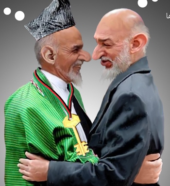 پرویز خان، به بخشید جناب حقانی ، در هرسال ۳۶۶ روز، برای کرزی، کاریکاتور های گاو و خر و میمون و..و کشیدند! گویا از امروز نوبت اشرف غنی است سوژه همیشه گی هم همان« تقلب» است! گویا دفعه اول است که در دنیا، تقلب شده!