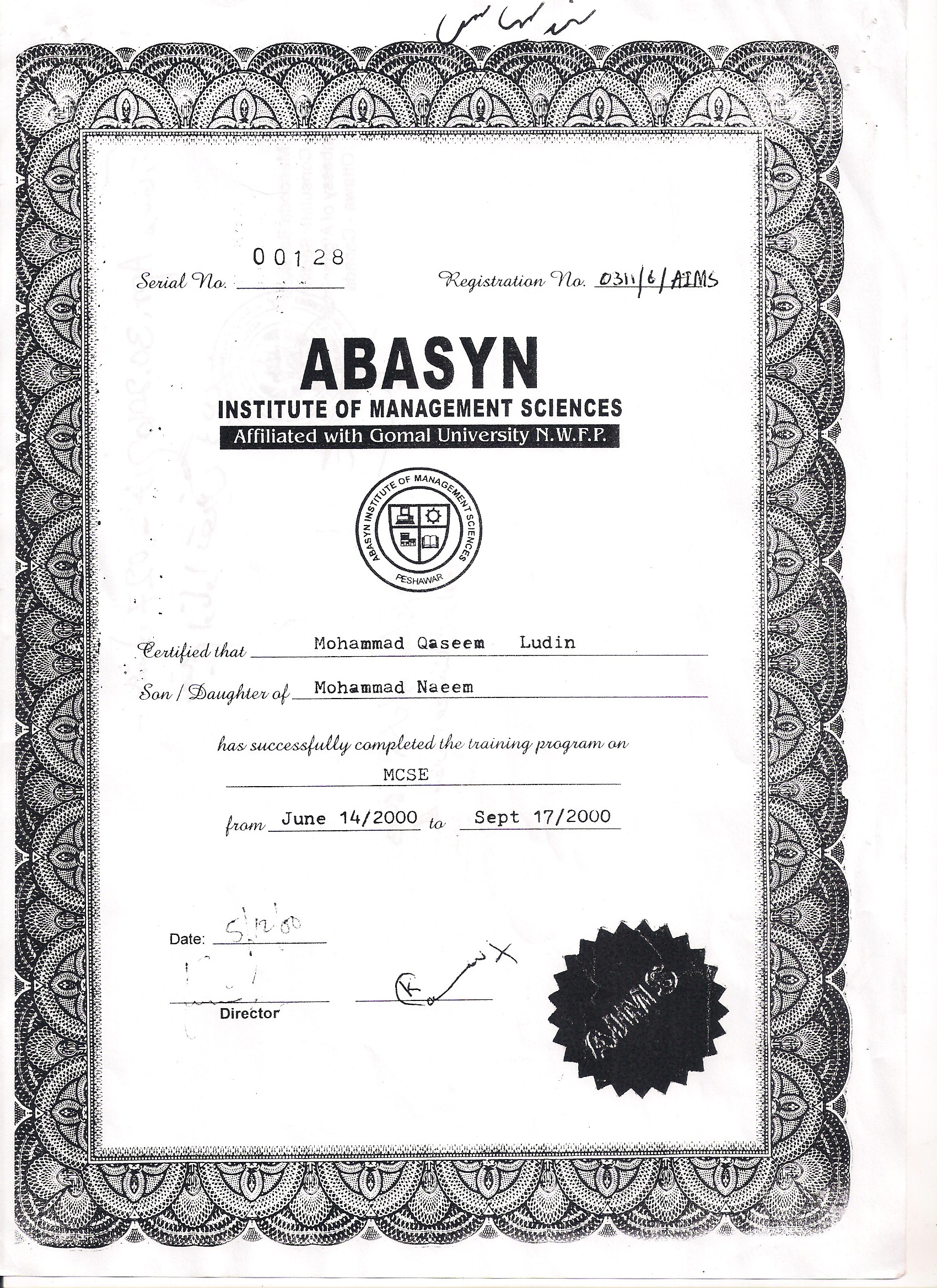 اسناد تحصیلی ساختگی محمد قسیم لودین تایید شده توسط برادر ایشان جاوید لودین