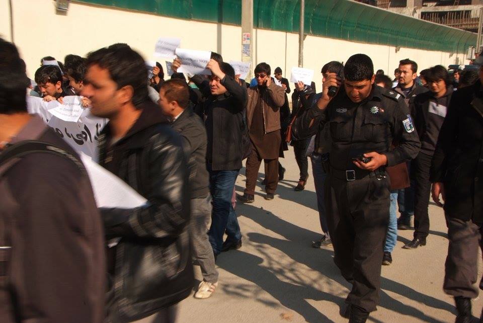 دقیق در همین ساعت جوانان آگاه از هر طرف جمع شدند. اعتراض کردند. پولیس اما مانع این اعتراض شد. عده ای یواشکی خندیدند.