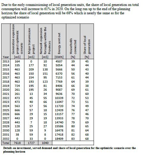 شرکت آلمانی فشنر قرار بود طرح ۲۰ سالۀ برق افغانستان را مطالعه و تدوین کرد؛ طرحی که از سال ۲۰۱۲ تا ۲۰۳۲ میلادی را دربر میگیرد. این گزارش در ابتدای سال پار (حمل ۱۳۹۲) آماده و به دولت افغانستان داده شد. بر مبنای این گزارش، نیاز افغانستان به برق در سال ۲۰۳۲ میلادی به ۱۸۵۰۰ گیگاوات در ساعت افزایش خواهد یافت. به این ترتیب، باید ۳۵۰۰ میگاوات توان/طاقت در خطوط برق افغانستان وارد شود. شرکت فشنر در ماسترپلانی که برای برق افغانستان تدوین کرده است، با در نظر گرفتن همۀ منابع تولید و خرید برق و همچنین پیشبینی نیاز به برق در ۲۰ سال آینده در افغانستان، اقتصادیترین راهکارهای ممکن برای تهیه برق افغانستان را مشخص کرده است. بر مبنای این پلان ، در بهترین حالت افغانستان تا سال ۲۰۳۲ تنها قادر به تولید ۶۸ درصد از برق مورد نیازش خواهد بود.