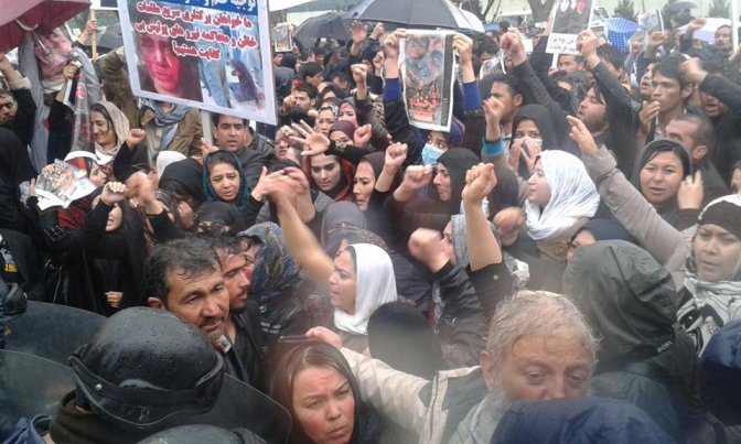 امروز سه شنبه 24 ماه مارچ 2015، هزاران تن از شهروندان کابل بويژه زنان، با برپایی راهپیمایی وسیع در دفاع از انسانیت، خواستار برقراری عدالت و محاکمه ی عاملان قتل فرخنده شدند.