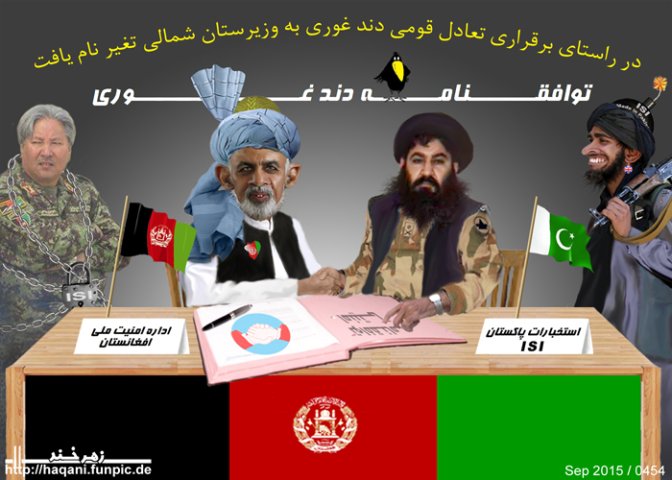 حالا جناب ملا اشرف غنی با بستن توافقنامه دند غوری و ایجاد وزیرستان افغانی در ولایت بغلان از یکسو به جنرالان پاکستانی نشان داد که دیگر فریب نیرنگ های شیطانی آنها را نخورده و به انتظار آوردن سران طالبان از وزیرستان جنوبی به میز مذاکره نخواهد نشست و از سوی دیگر با ایجاد وزیرستان شمالی در بغلان نیت خیرش را به مخالفین سیاسی و برادران ناراضش نشان داده و ثابت کرد که واقعا گوشت از ناخن جدایی ندارد.