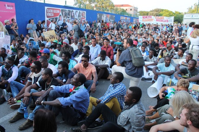 Venice, a mass rally in support of asylum seekers