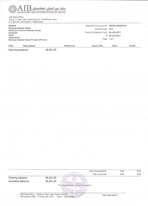 صفحه نخست > دیدگاه > وبلاگ نویس > از رسانه های دیگر > گزارش مالی داکتر رمضان بشردوست، نماینده ی مردم در پارلمان افغانستان