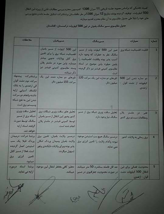 همچنان که در جریان هستید، پس از اعتراضات میلیونی شما مردم افغانستان به فیصله 11 ثور 1395 کابینه حکومت وحدت ملی مبنی بر تغییر میسر پروژه لین انتقال برق 500 کیلوولت از مسیر بامیان-میدان وردک به مسیر کوتل سالنگ و تقدیم 86 شهید و بیش از 400 مجروح در این دادخواهی بزرگ مدنی، رییس جمهوری اسلامی افغانستان طی حکم شماره 2108 مورخ 26 سنبله 1396، کمیسیونی را متشکل از مقامات حکومتی و نمایندگان جنبش روشنایی توظیف نمود تا به منظور تامین شفافیت در طرح و تطبیق پروژه های انکشافی و رسیدگی به مطالبات شما شهروندان کشور، ضمن بررسی تمامی اسناد ملی و بین المللی مرتبط به پروژه های مذکور، یافته ها و راه حل پیشنهادی مشخص خویش را در خلال مدت سه هفته بعد از صدور حکم به ریاست جمهوری اسلامی افغانستان ارایه نماید که بعدا به دلیل زمانگیر شدن کار کمیسیون و به تعویق افتادن های پی در پی جلسات آن، مدت کاری این کمیسیون طی حکم شماره 2415 مورخ 7 میزان 1396 ریاست جمهوری، به مدت هشت هفته تا 13 قوس 1396 تمدید گردید. جلسات کمیسیون با ریاست داکتر محمد همایون قیومی در مدت زمان تعیین شده توسط احکام ریاست جمهوری برگزار گردید. در جریان کار کمیسیون، برای تسریع و دقت کار، دو مرتبه، کمیته تخنیکی، متشکل از اعضای کمیسیون به شمول آقای امان الله غالب رییس شرکت برشنا تشکیل گردید. کمیته تخنیکی تمامی اسناد مرتبط را به طور مفصل بررسی نموده و طی بحث های دقیق و موشکافانه، وظیفه خود را انجام داده و نتایج کاری خویش را به کمیسیون گزارش داد. این گزارش به اتفاق آرا مورد تایید کمیسیون قرار گرفت. براساس گزارش کمیته تخنیکی که دو مسیر را با شاخص های سیزده گانه مانند افزایش قابلیت اطمینان شبکه برق کشور و امکان اتصال منابع تولید برق داخلی با هم مقایسه نموده است، مشخص شد که مسیر بامیان-میدان وردک به مراتب چه از نظر کمی و کیفی و چه از نظر منافع کوتاه مدت و بلند مدت، تامین کننده منافع ملی می باشد. همچنان این کمیته پس از بررسی های دقیق علمی و تخنیکی، وجود تناقضات بین جدول مقایسوی و متن یکی از اسناد ارایه شده به شرکت برشنا را که درآن امکان ساخت لین برق در دو مسیر با هم مقایسه شده بود، به اتفاق آرا تایید نمود که این موضوع یک بار دیگر سهولت امکان ساخت پروژه در مسیر بامیان-میدان وردک را محرز می سازد. مطابق حکم ریاست جمهوری، پس از تثبیت یافته های تخنیکی، باید در جلسه پایانی کمیسیون، راه حل مشخص کمیسیون در روشنی این یافته ها، به مقام ریاست جمهوری جهت اتخاذ تصمیم لازم ارایه می گردید. اما با تاسف جناب آقای داکتر محمد همایون قیومی رییس کمیسیون برخلاف حکم ریاست جمهوری از برگزاری جلسه کمیسیون خودداری ورزید. از آنجایی که ما اعضای کمیسیون بررسی مطالبات مردم ناشی از لین انتقال برق 500 کیلوولت، متعهد به شفافیت در کار کمیسیون، پاسخگویی به افکار عمومی مردم افغانستان و تعمیل مفاد حکم ریاست جمهوری می باشیم، گزارش کاملی از یافته های تخنیکی همراه با راه حل پیشنهادی مشخص را به ریاست جمهوری اسلامی افغانستان ارسال نموده ایم تا بر اساس آن تصمیمی را که تامین کننده منافع ملی کشور و حل کننده بحران اجتماعی ناشی از این مساله می باشد، اتخاذ نمایند. بدیهی است که اعضای کمیسیون، این گزارش تکمیلی را با کشورها و مجامع کمک کننده با افغانستان به شمول نهاد بانک انکشاف آسیایی که تمویل کننده پروژه می باشد، شریک خواهند نمود تا در تخصیص کمک های خویش در پروژه های انکشافی، منافع ملی مردم افغانستان را در نظر گرفته و از شیوع فساد و تصمیم های مبتنی بر تبعیض در این پروژه ها جلوگیری نمایند. مزیت ها و منافع راه حل پیشنهادی: