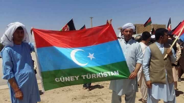 سبز، آبی و سرخ با نشان و ماه و ستاره در قسمت آبی رنگ آن بیرق تورک ها از جمله اوزبیک ها و تورکمن ها می باشد.