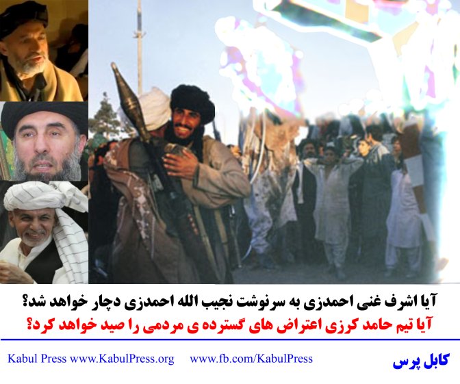 از منظر احمدزی، بین هر دو دلیل، ارتباط خاص وجود دارد. نجیب الله احمدزی که به نجیب گاو و نجیب قصاب معروف بود، اشتراکات قبیله ای با اشرف غنی احمدزی داشت و احمدزیی ها دلیل اصلی سقوط حکومت وی را ادامه ندادن حمایت دوستم از نجیب الله احمدزی می دانند. نجیب الله احمدزی در ماه های آخر عمر خود تصور می کرد به دلیل اشتراکات قبیله ای و اینکه بدنه جنگی طالبان را کوچی ها تشکیل می دهند، از ملا محمد عمر آخوند امان خواهد گرفت و حتا ممکن بتواند بتواند به قدرت باز گردد. با این وجود طالبان که درانی ها و بويژه نورزی ها در آن دست بالا را داشتند و به شدت از طرف خاد و حکومت وقت به رهبری نجیب الله احمدزی سرکوب شده بودند، بلافاصله در چهارراهی آریانای شهر کابل، او و برادرش را ابتدا گلوله باران و سپس حلق آویز کردند.
