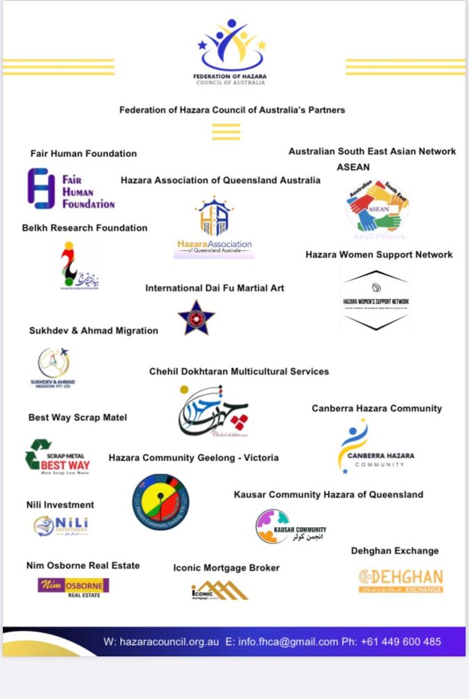 قراراست فدراسیون شورای هزاره های استرالیا «FHCA» به طور رسمی با حضور وزرای دولت استرالیا ، وکلای پارلمان ، اعضای مجلس سنا ، هنرمند خوب ما آقای هادی اخلاص و نمایندگان هزاره ها از شهر های مختلف ، سه شنبه ۲۷ فبروری ۲۰۲۴در مجلس پارلمان استرالیا در کانبرا پایتخت این کشور افتتاح گردد .