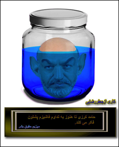 کرزی رهبر ما است و اطاعت از رهبر جز دین ما نیز است چی فایده که من کارتون تو را ترسیم کنم تو از مرا و فایده آنرا ایرانی ها و نوکران حلقه به گوش شان ببرد.